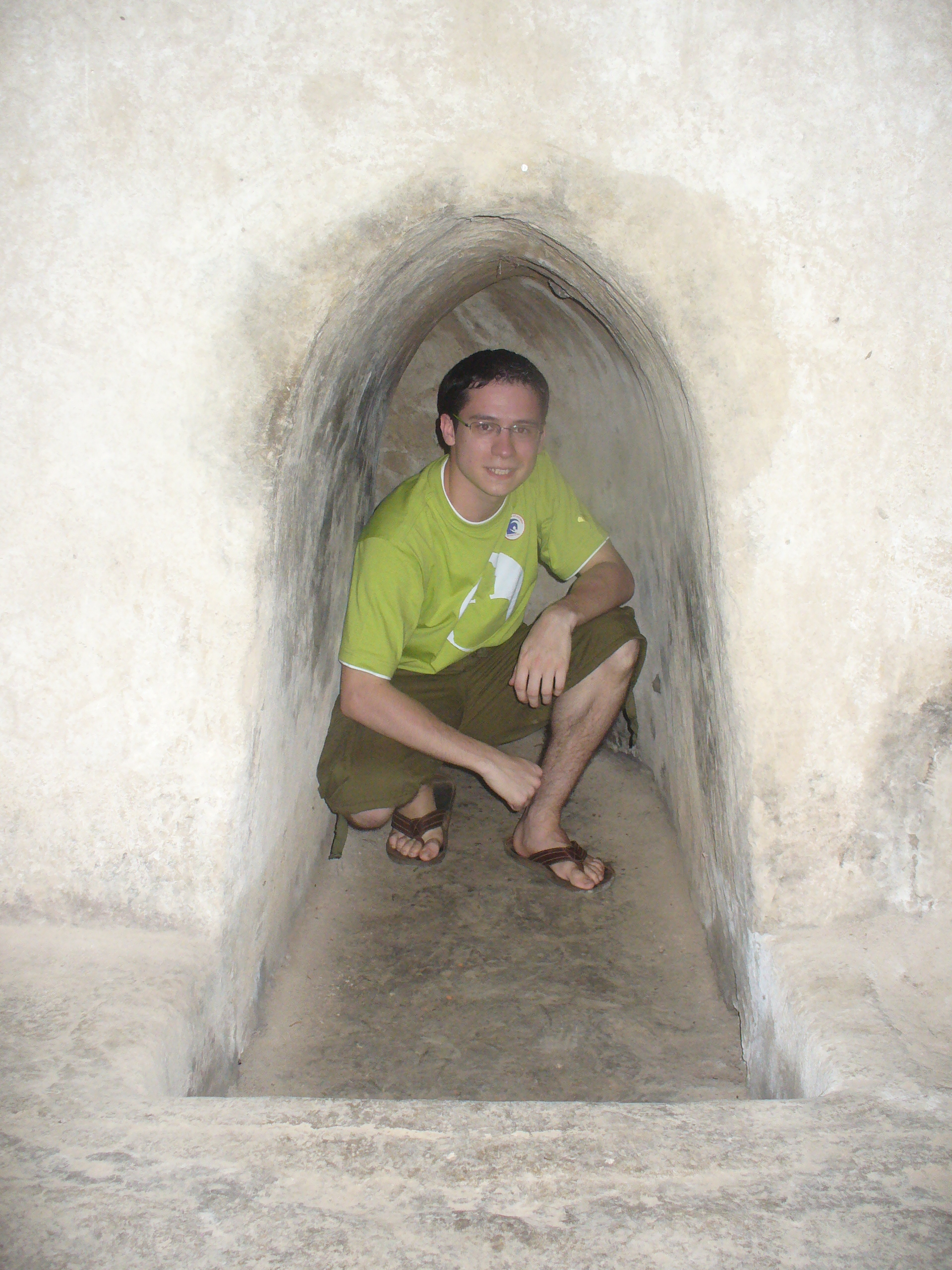 He begins to translate one of the bright red and yellow billboards on the side of the road. “Work harder for the people,” one such sign reads. On the roads outside of Saigon villagers toil away in passing fields donning Vietnamese-style rice paddy hats shielding them from the mid-day heat while motorcyclists wear them in place of a conventional helmet. This style of hat is an unmistakable site in Vietnam. The Cuchi Tunnels (http://www.cuchitunnel.org.vn/), located about 45 minutes outside of Saigon, are a series of hollowed out subterranean corridors used by Vietnamese soldiers during ‘the war.’ Visitors are welcomed to crawl down these pitch black hideouts if they have the stomach and lack the girth. Whole kitchens, infirmaries, and infantry quarters have been made viewable from the surface for those unwilling to meander through the humid maze. My guide informs me these particular tunnels are about twice as big as most of the original ones utilized during the war. There is also a firing range for those so inclined to let off a few rounds of archived arsenal.