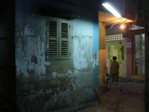 Pham Ngu Lao is to Saigon what Khao San Road is to Bangkok. It caters to the backpackers of Southern Vietnam acting as a tourist information hub and bus terminal. There is a wide variety of budget restaurants and Asian trinket shops spread between dozens of ultra discounted clothing retailers. However, a quick turn down one of the alleys off of Pham Ngu Lao and De Tham St. reveals a much different world. These one and a half meter wide alleys shift through small neighborhoods of clustered homes with open doors, loud televisions, and louder residents. There is an anthill of movement, babies crying, and the occasional crossing chicken. The stir of Mahjong chips and smiles sets a jovial atmosphere to the otherwise intangible background static of the labyrinthine cement corridors.