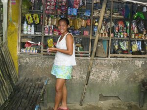 When we arrive, the wood burning stove is sizzling with the sweet aroma of adobo sauce, a soy based blend of garlic and spice which is considered the staple of cuisine in the Philippines. The stove rests upon the same brick-work pattern of dark cement blocks as the house. The interior walls match the exterior and the nipa leaf roof is placed over the foundation like an awkward jigsaw puzzle piece that doesn’t quite fit.