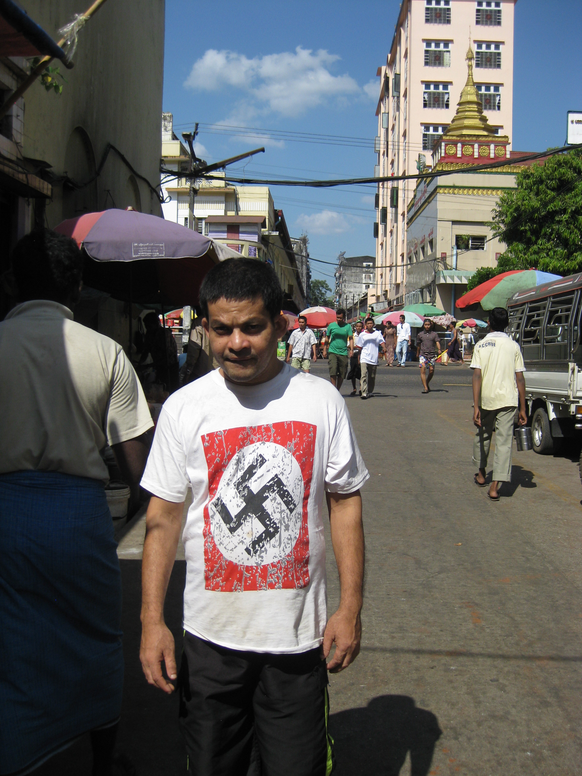 My colleague (and former study abroad advisor) with a Nazi T-shirt, in front of a Buddhist temple outside of Yangon