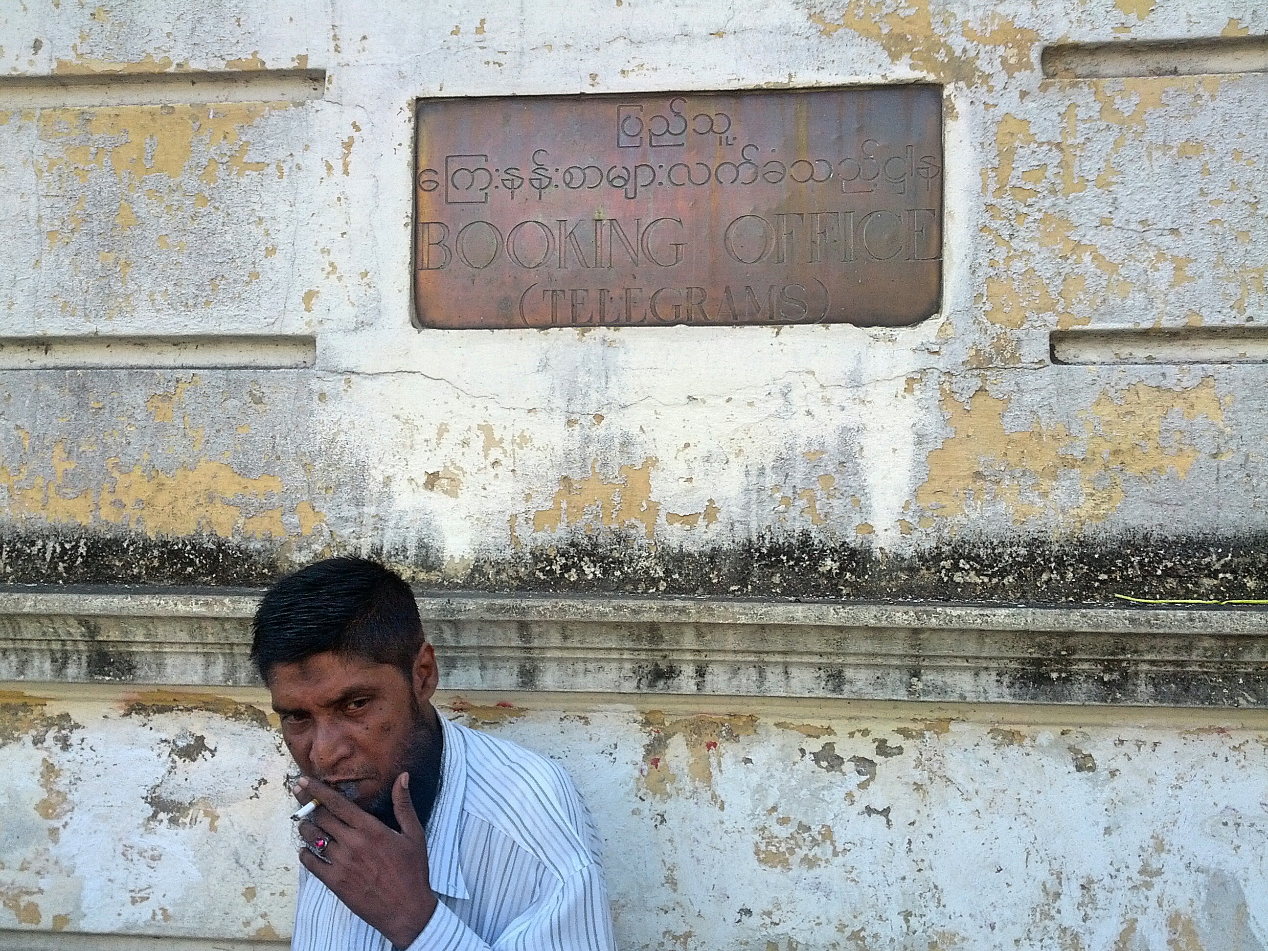 But the looming telecom tower perched upon its northeastern corner nonetheless makes this British relic distinguishable. Today over a century old, the building is now administered by Myanmar’s national telecom company, MPT, but two counters at the booking office accessible by the public from Mahabandoola Street still offer customers a service not available by its new foreign competitors, Ooredoo and Telenor.