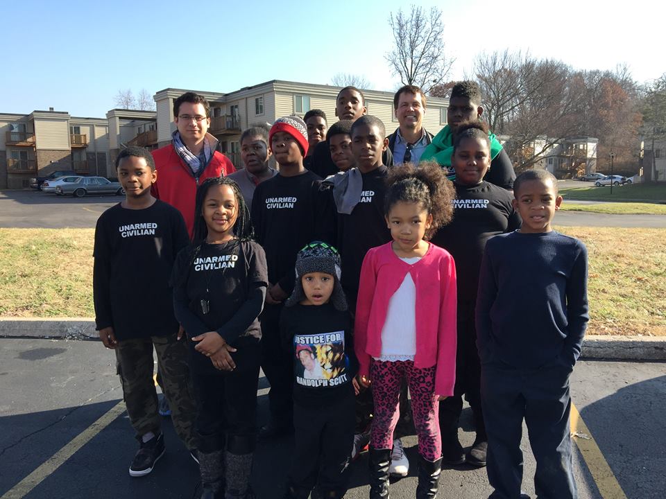 “Have you eaten breakfast yet?” the woman asked as we alighted from our Volvo. It was already noon and she was carrying two plastic bags with about six Styrofoam boxes in each filled with fried chicken and rice. It was a Sunday and she was delivering the meals with seven children as helpers that were wearing black T-shirts with bright white lettering the read: “Unarmed Civilian.” Less than 10 meters from where the woman currently stood, Michael Brown was shot and killed by Officer Darren Wilson in an incident that would become the epicenter of one of America’s most racially incensed debates in decades. Local hardware stores, gas stations, the Dollar General, furniture outlets and restaurants were looted and razed in subsequent reactionary riots that catalyzed discussion in the US over much more than the legalities of that fateful night in Ferguson. In a show of empathy and humanity, we offered to say a prayer with the mother and the children before they continue with their deliveries, to ask that we as a country may one day understand each other better and dissolve the mutual antagonism that still seems flicker.John and I with some of Ferguson’s Sunday community volunteers