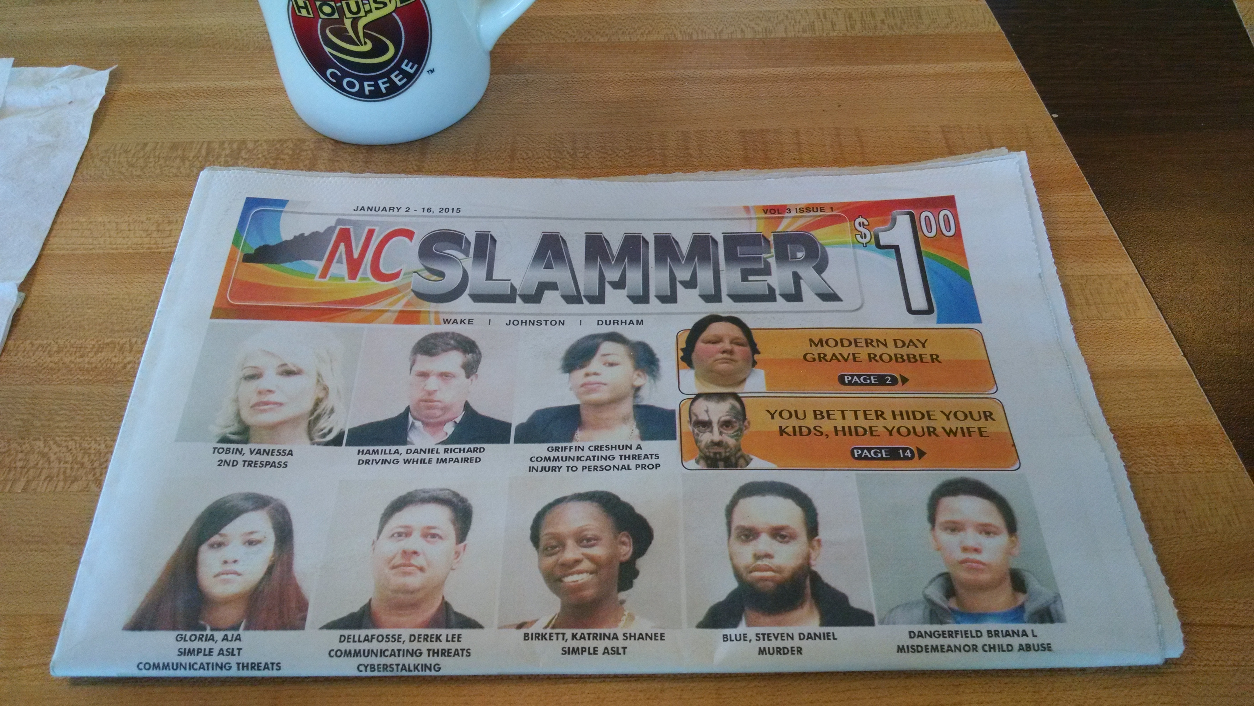 Few things are as imbued with the sense of southern flavor as the Waffle House. It was a perfect breakfast location to catch up on one of North Carolinans premier periodicals, the NC Slammer, where criminals convicted of felonies and misdemeanors are pilloried for all to see.